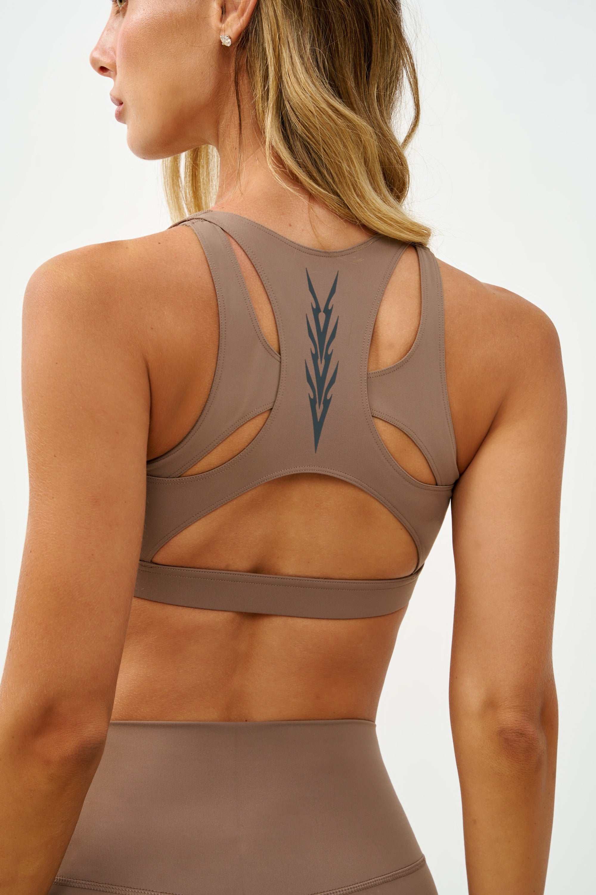 SPORTS BRA HIGH NECK GRAY VEINS GRAPHIC