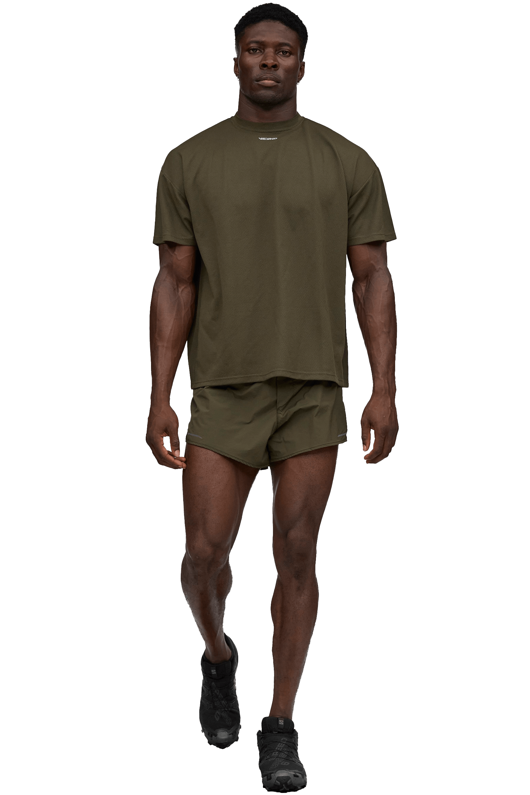 Dominate your workouts in this Signature Veynd Khaki t-shirt with edge. Created from our technical V_DRY fabric, it has chafe-free, quick-drying and anti-odor properties, keeping you cool and comfortable during the most intense sessions. The bold reflective graphic adds a touch of style while enhancing visibility no matter where you choose to workout.