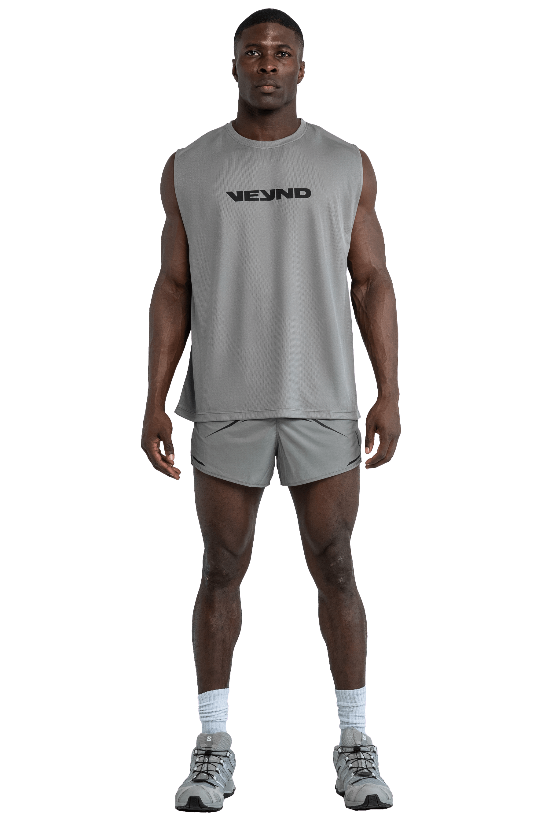 Elevate your gym style with this light gray sleeveless tank. Experience our technical V_DRY fabric, offering quick-drying and chafe-free comfort, keeping you fresh through your workouts. The unique graphic V on the back makes a statement both in and out of the gym.