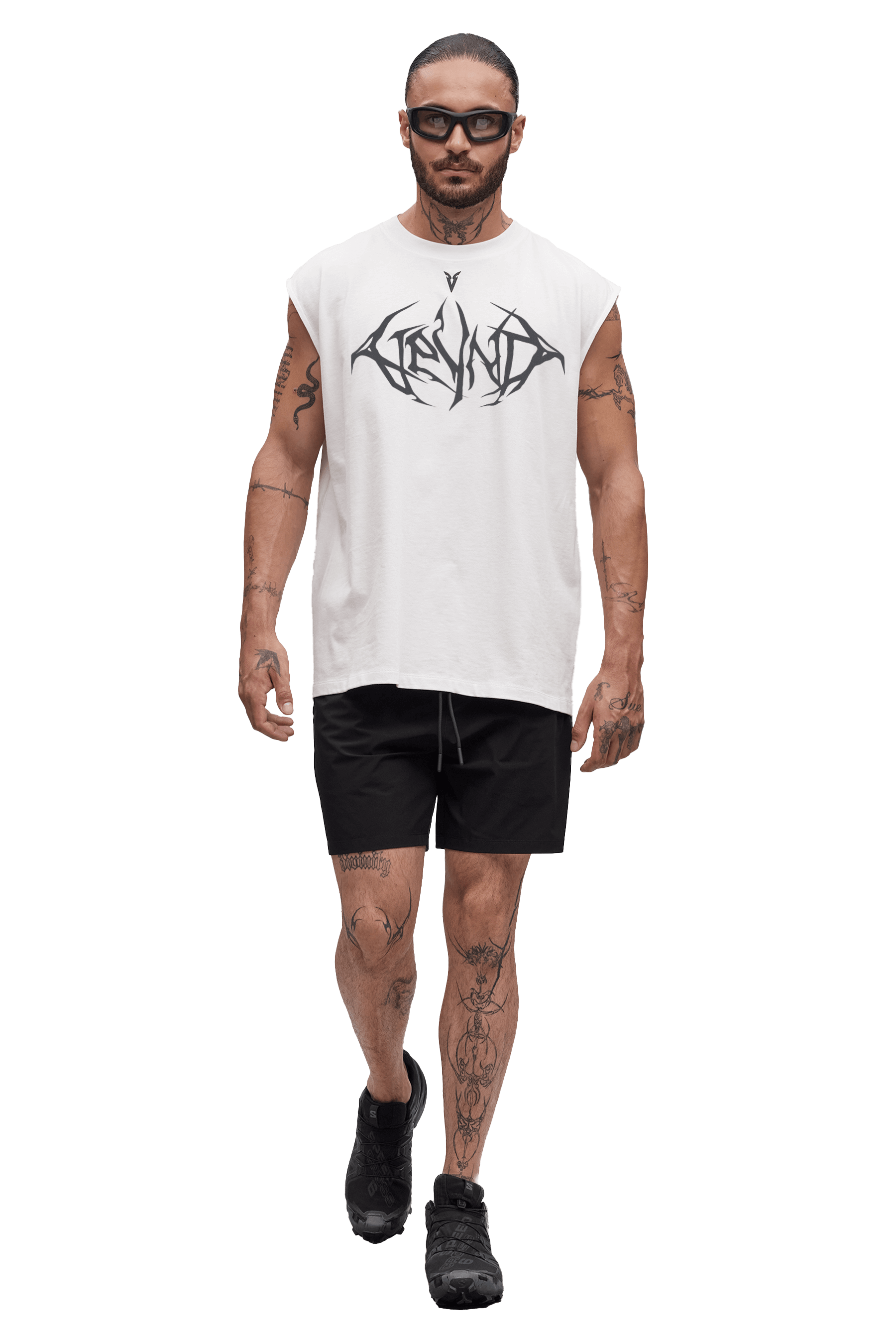 Our signature V_LYFE220 sleeveless t-shirt with a graphic statement . Made for every occasion with our centralised V logo and graphic detail set against premium cotton.