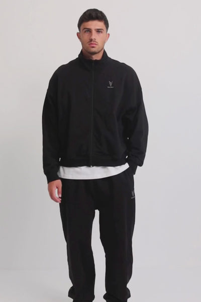 BOXY ZIP HOODIE - Black