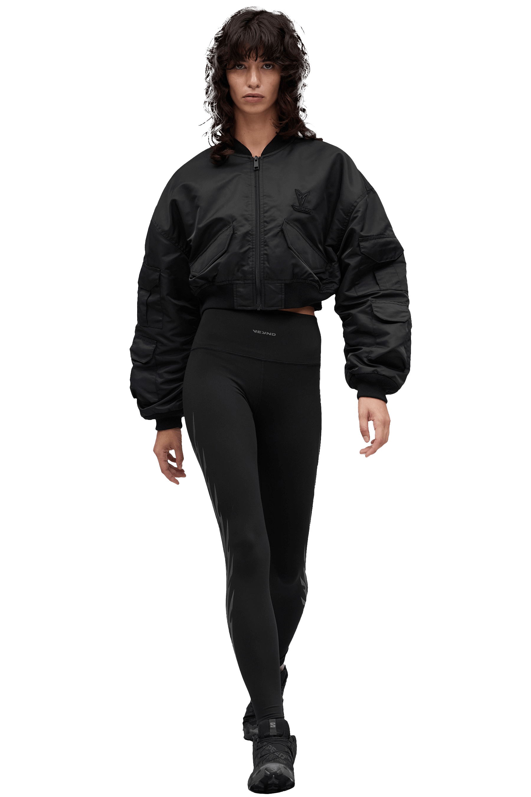 Our signature bomber jacket for every day styling. Engineered from a V_FLYTE fabric composition, this cropped jacket offers a warm quilted interior and a water repellant exterior making it a functional fashion piece.