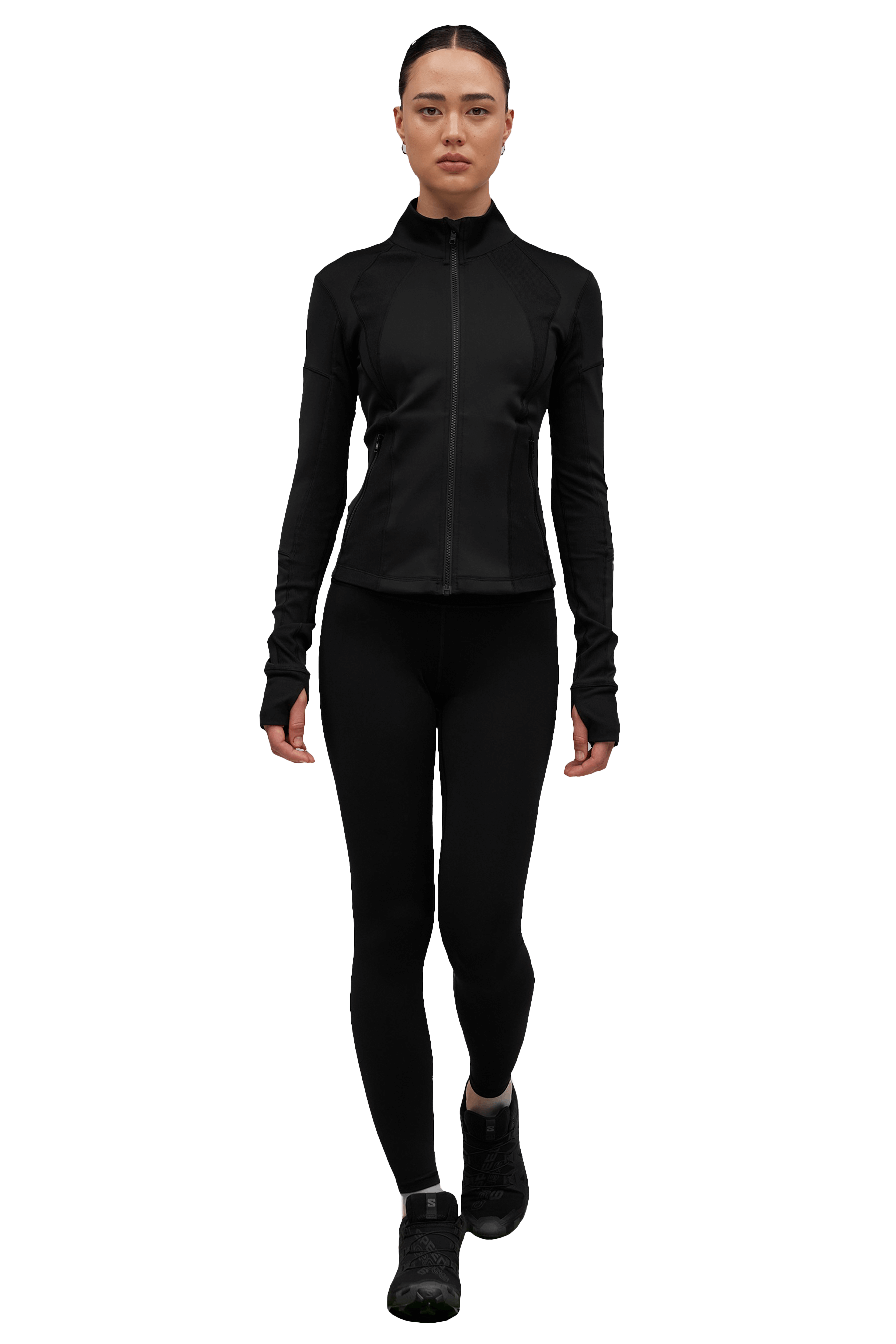 Introducing our body contouring mid-later with V_FORM fabric. Throw on this gym layer and experience the perfect combination of stretch, shaping and thermal properties. Let this jacket define and refine your gym wardrobe - its your new Pilates jacket, brunch jacket, everywhere jacket, plus it has thumbholes...