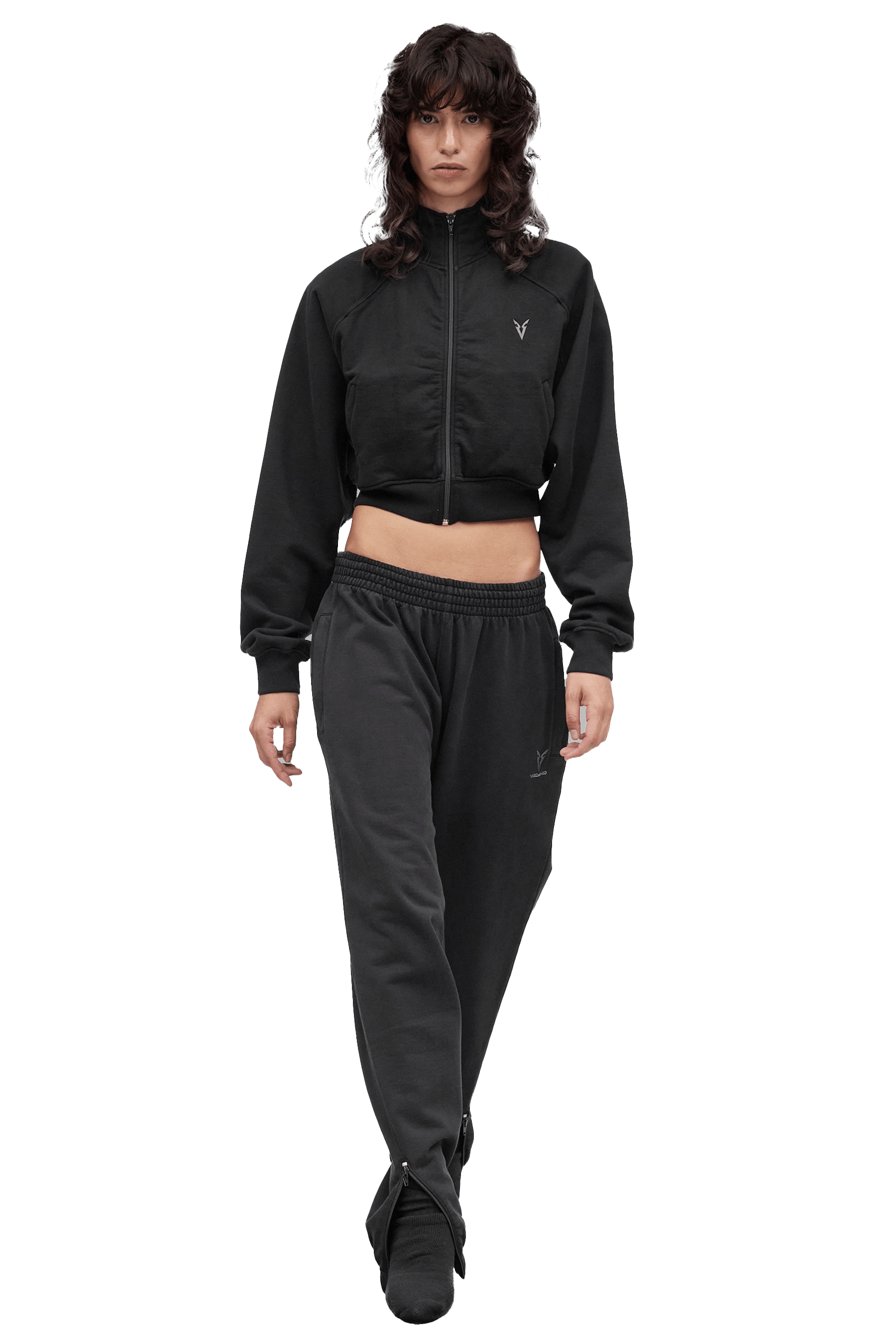 The classic Veynd boxy fit in a cropped zip sweater, with premium V_LYFE420 cotton and subtle shoulder padding for an exaggerated look.