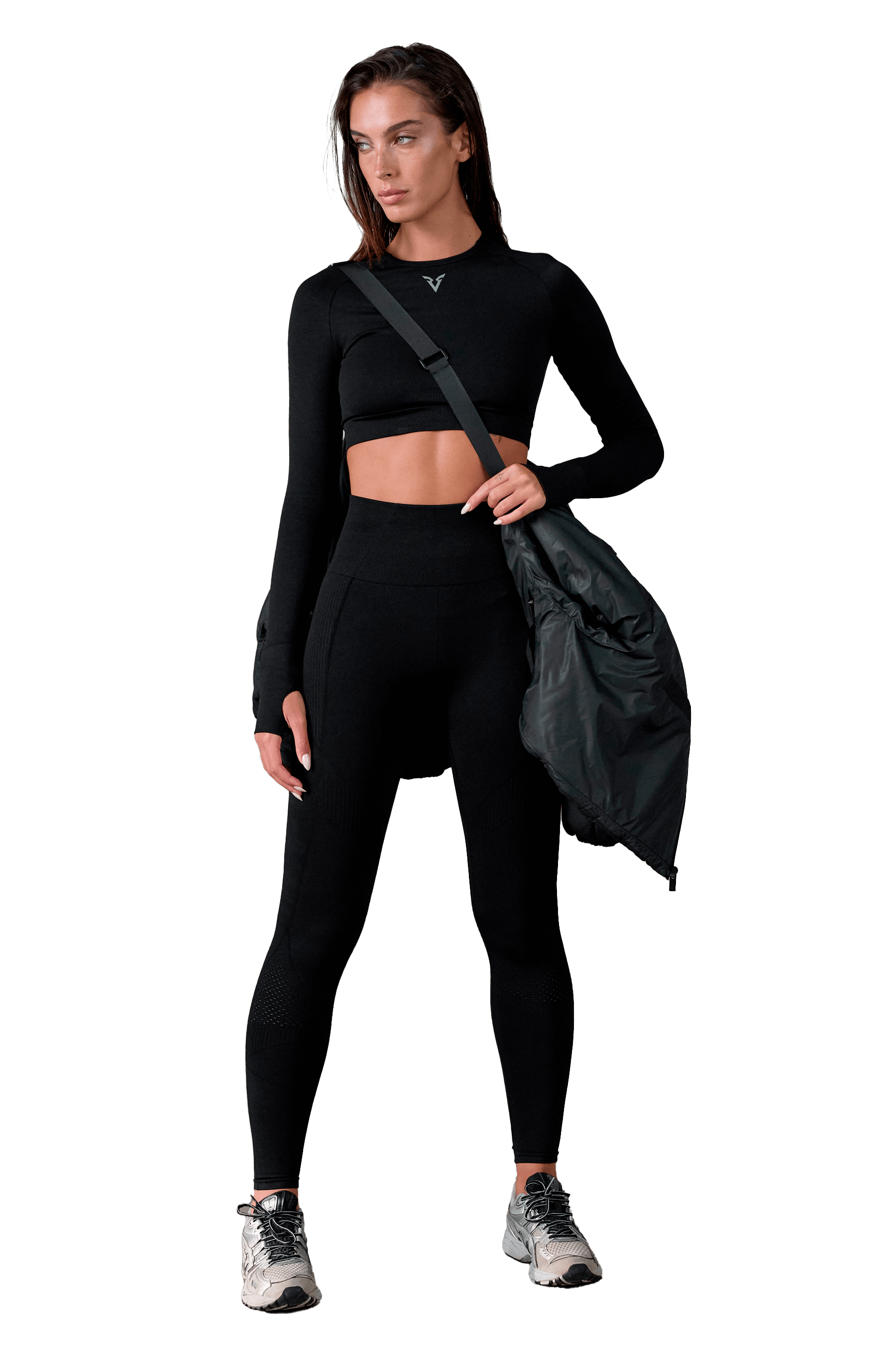 LONG SLEEVE CROPPED TOP SEAMLESS - Black