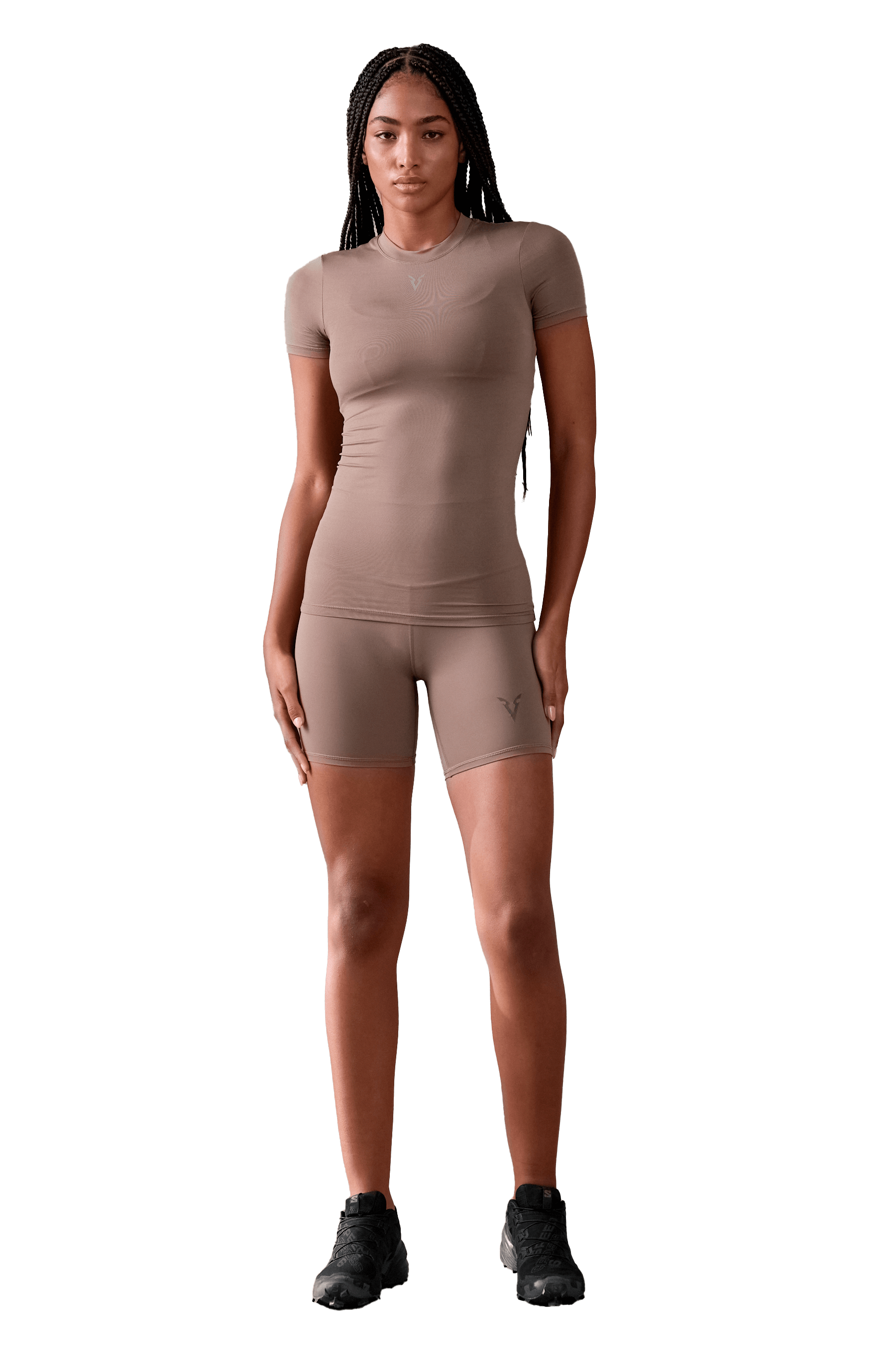 The tight fit V_SKYN fabric t-shirt with stretch, quick drying and odor-resistant properties. It's the simple and elegant staple gym tee - it's a favorite for a reason.